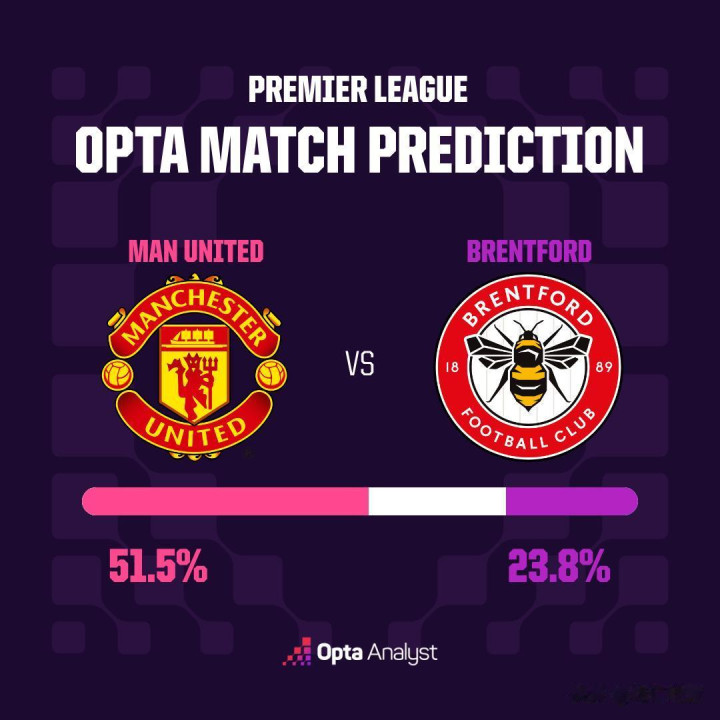 而在Opta的推敲中,本场的红魔也真是是上风较着--红魔胜,51.5%;小蜜蜂胜,23.8%;两边平局,24.7%。