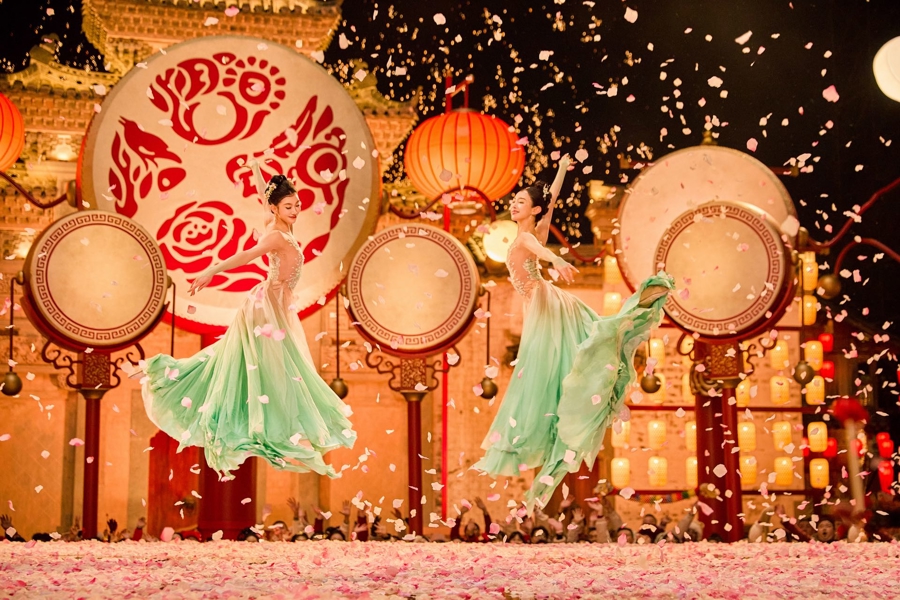 舞台上,光影交汇间,小商品市集的高贵与红灯笼、剪纸的年俗意想齐备交融。两东谈主的舞姿一柔一刚,朱洁静水袖轻扬,温婉灵动;周晓辉腾踊舒展,坚定有劲。她们时而交汇,时而杂沓,每一个回身、每一次抬手王人精确踩在饱读点上,与景色饰演、歌声齐备契合,组成一幅“寰宇同庆中国年”的绝好意思画卷。“春神标记着但愿与腾达,冬去春来,是中国东谈主对新生与好意思好的向往。”周晓辉如是说。