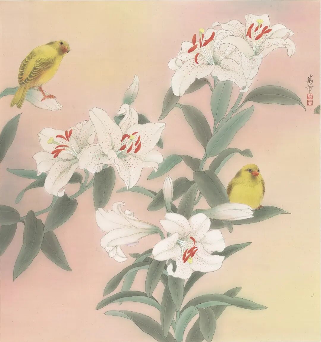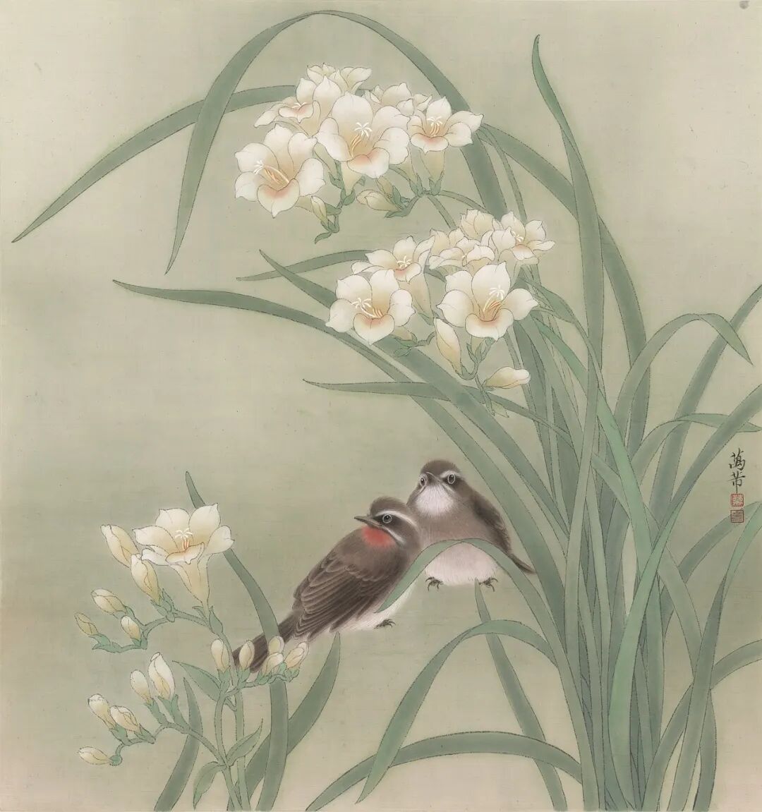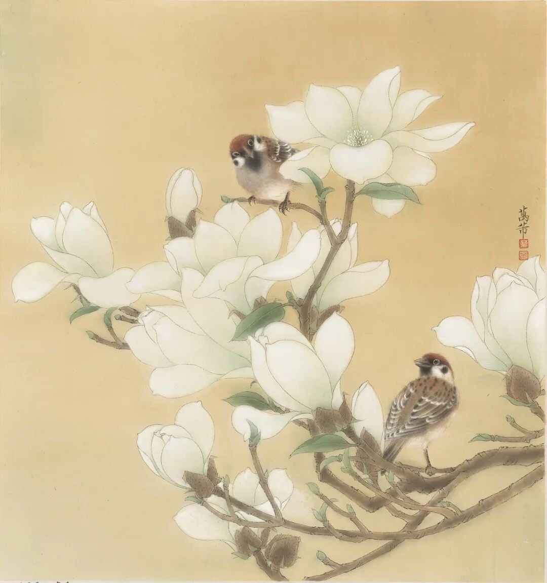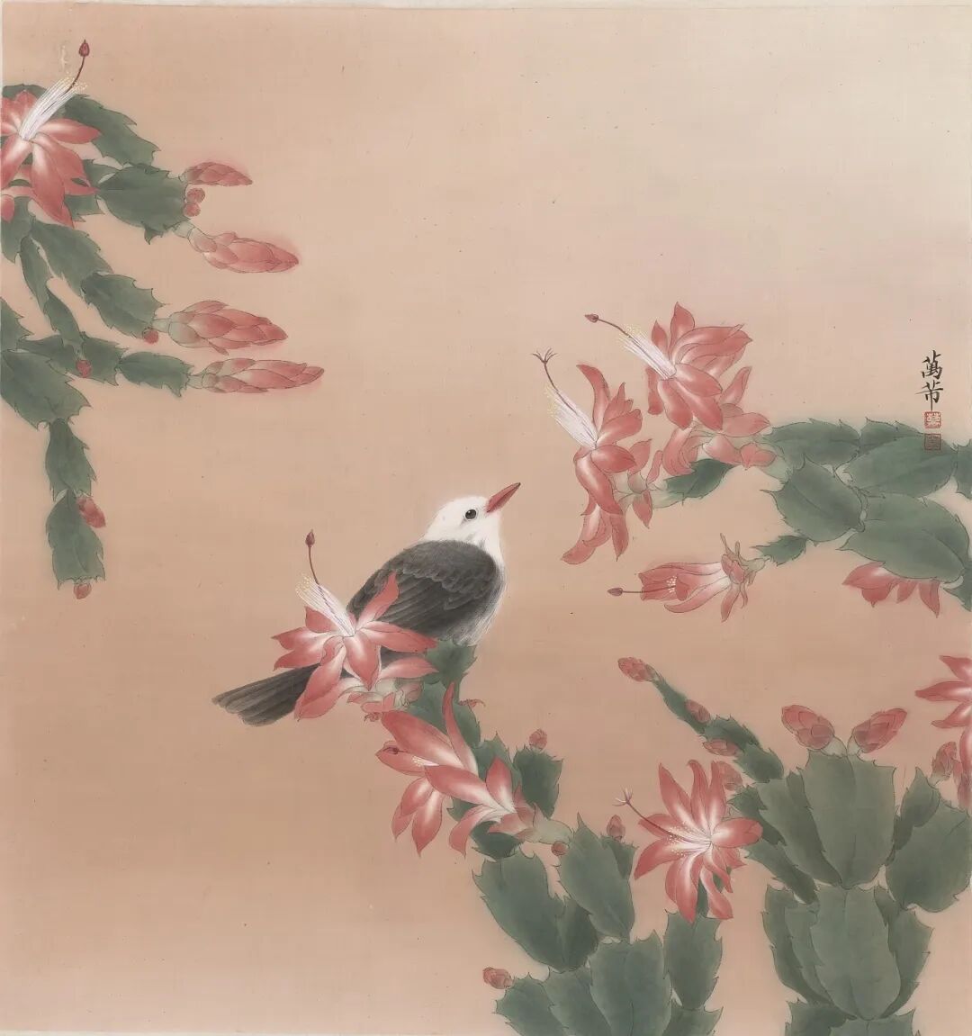 万芾是上海实力派花鸟画家,她笔下“花鸟天下”中的二十四气节,作品色调丰富,构图当代而不失传统韵味。