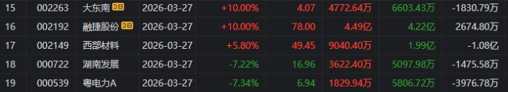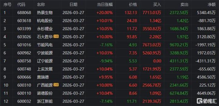 东方新能:当天涨停,全天换手率13.08%,成交额20.28亿元,振幅18.15%。深股通净买入5180.21万元,营业部席位整个净买入4.40亿元。