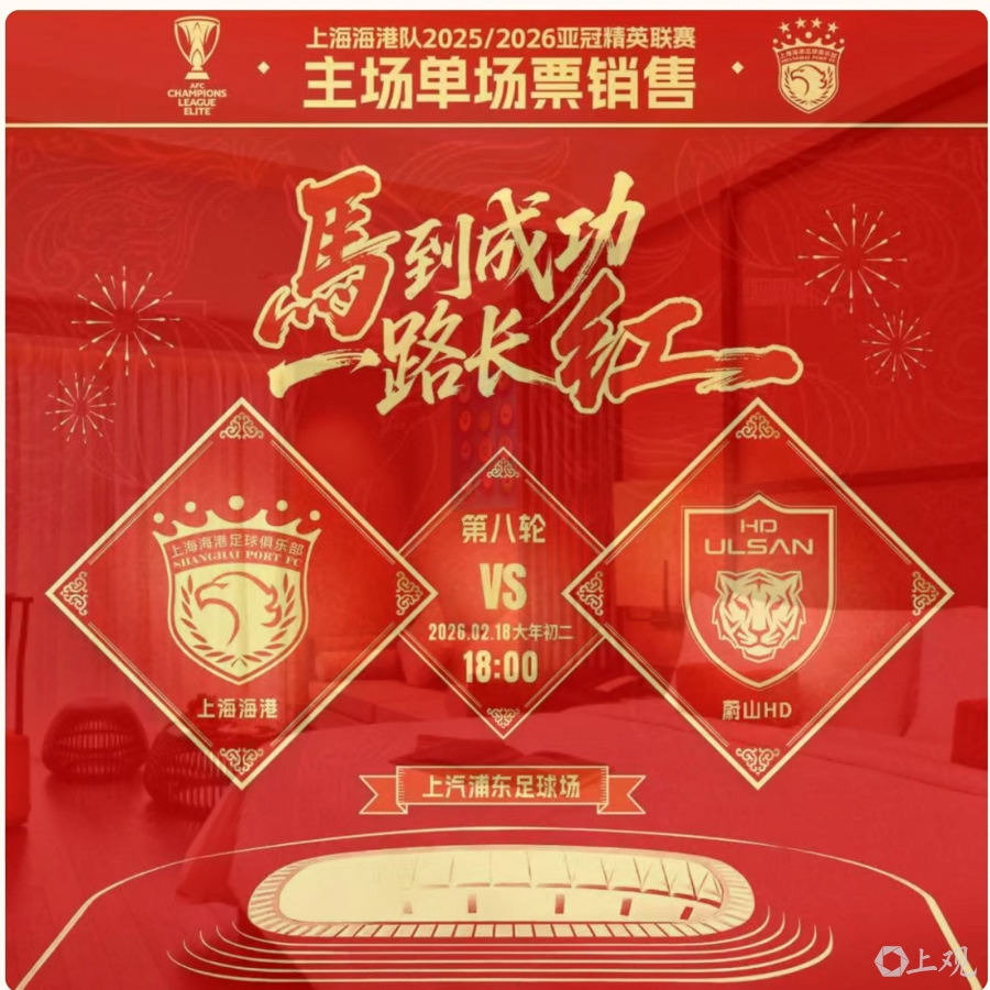 2 月 18 日 18 时,农历马年正月初二,看成中超三冠王的上海海港队将在上汽浦东足球场迎战韩国蔚山 HD 队,这亦然球队在亚冠精英联赛小组赛的收官之战。