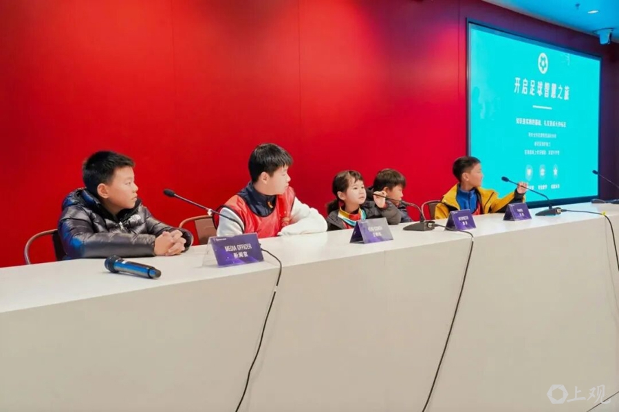 来到新闻发布厅,孩子们系统学习了球场知识、比赛限定、赛场礼节,以及新闻发布会的完好意思经过与细节。随后,孩子们化身 “球队发言东谈主”,模拟赛前联席会与新闻发布会次序,勇敢继承 “采访”,大方抒发我方对足球的爱好、对球星的顾惜,以及对上海海港队的竭诚道贺。