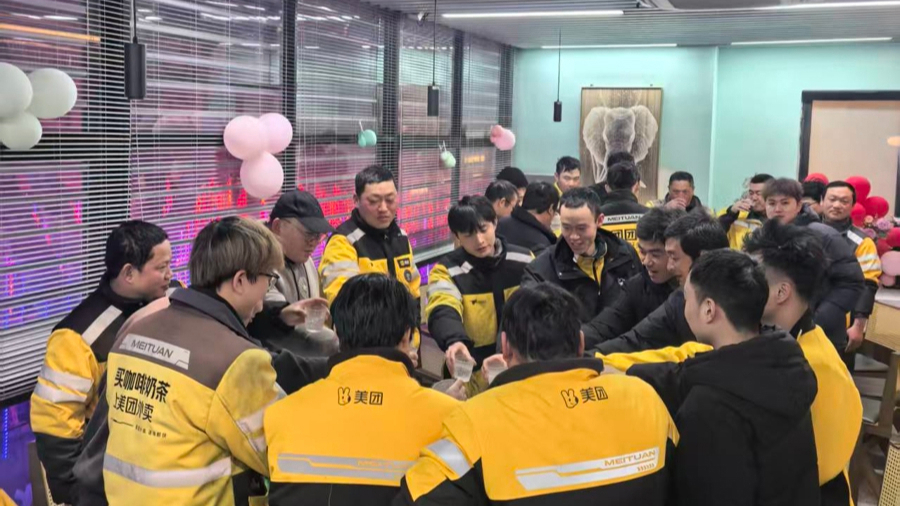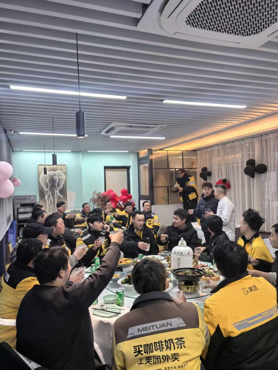 “前年亦然洪雇主请咱们吃的除夕饭,本年一说依然这儿,昆仲们齐说又要‘回家吃饭’了。”一位外卖员一边夹着红烧肉,一边跟身旁的同伴举杯。看见洪赵龙还在厨房劳作,环球迅速拉着他坐下。