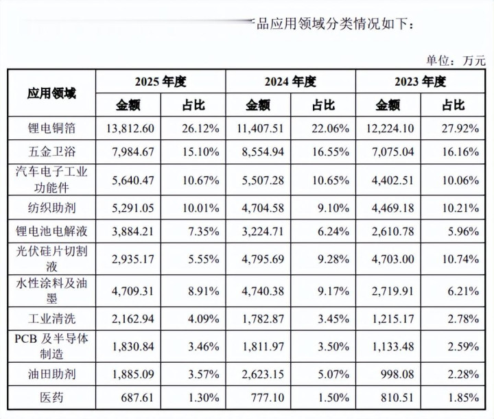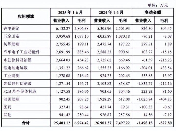 其中,锂电铜箔、锂电电解液、PCB及半导体等中枢卑劣应用限制,受益于行业卑劣阛阓需求握续增长及居品价钱冉冉还原,功绩水平同比稳步飞腾,成为公司指标增长的中枢驱能源。