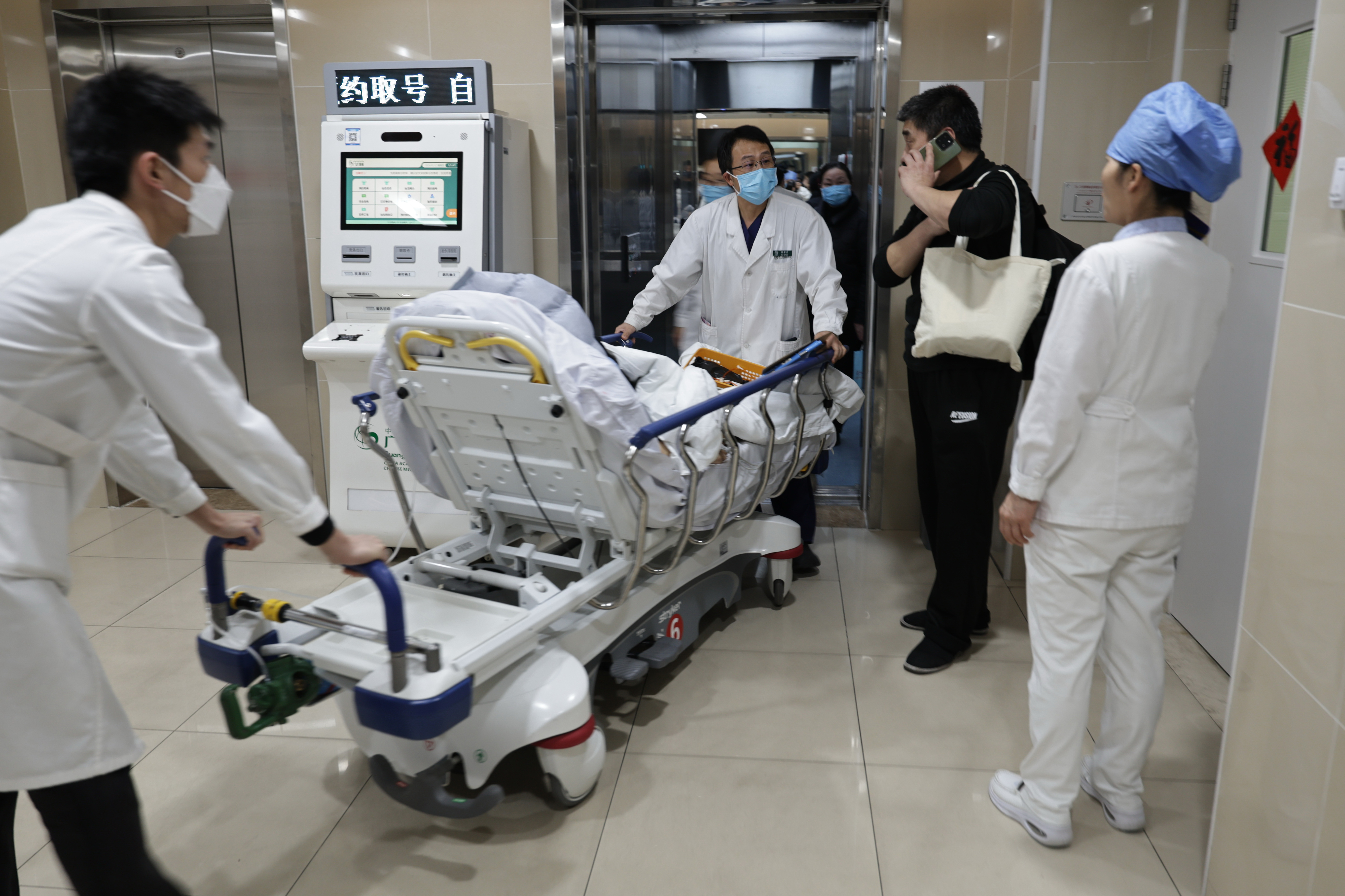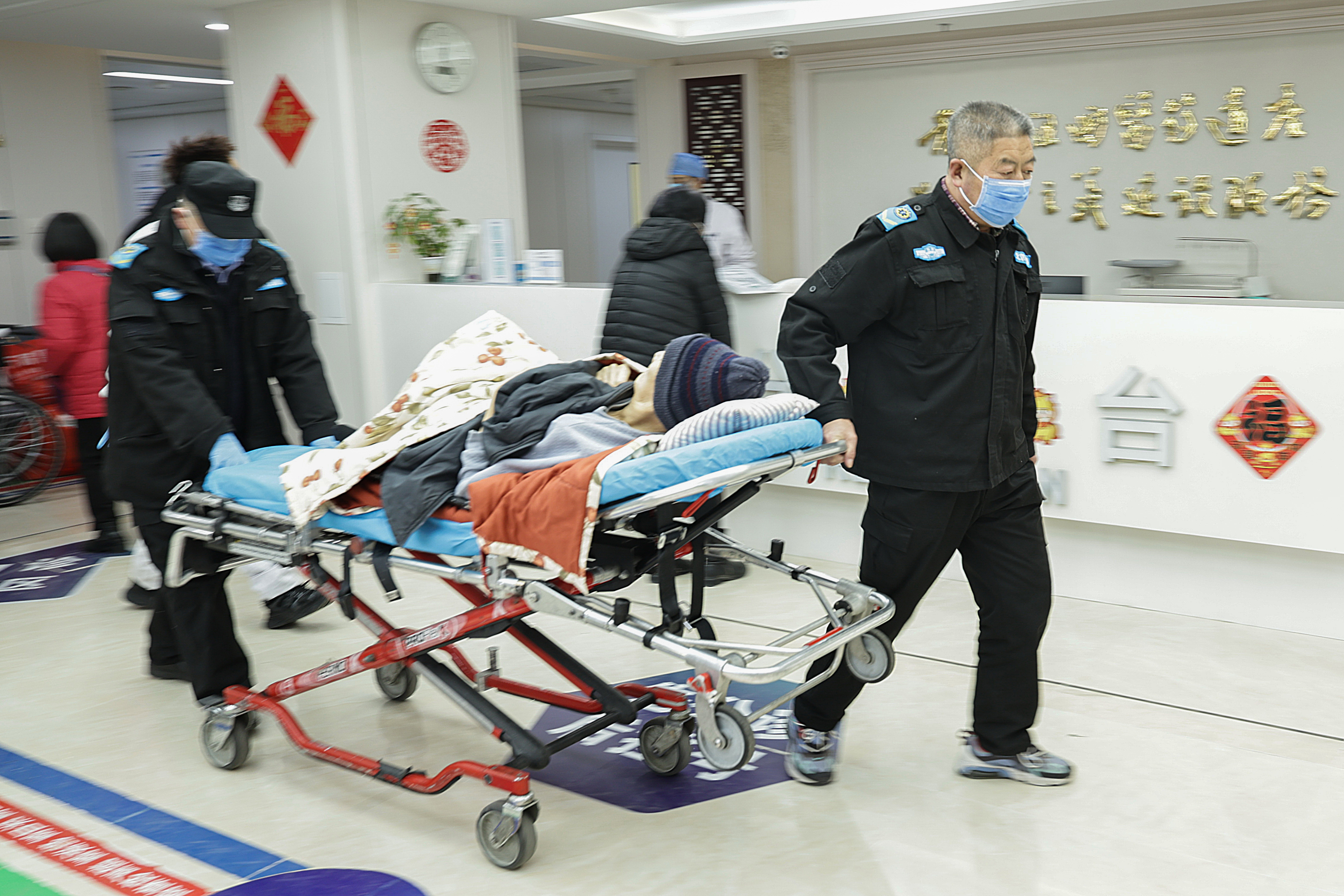 2月12日12时许,120急救东谈主员在急诊大厅转运别称患者。