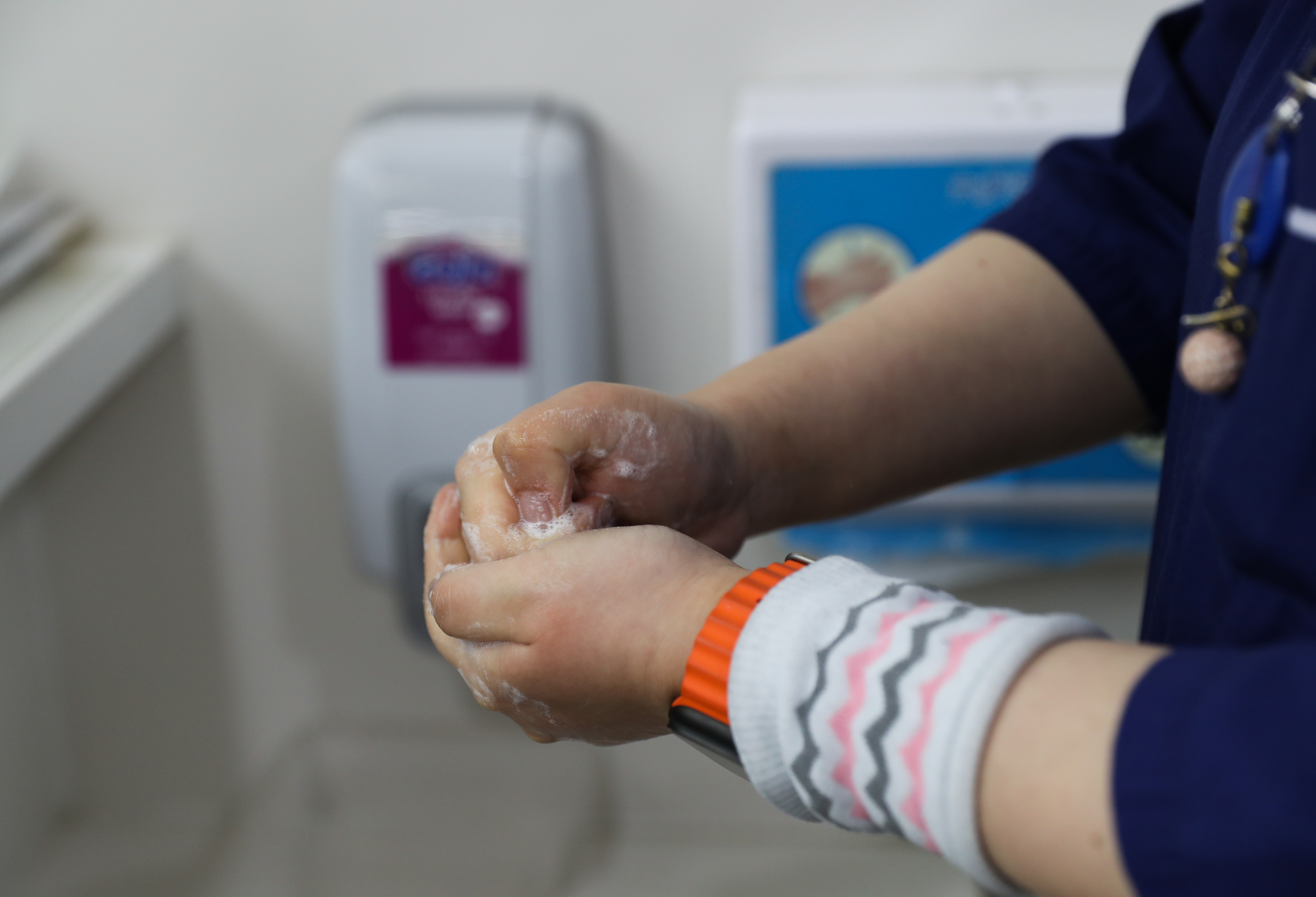 2月4日0点41分,照拂斗争病患后用七步洗手法洗手。