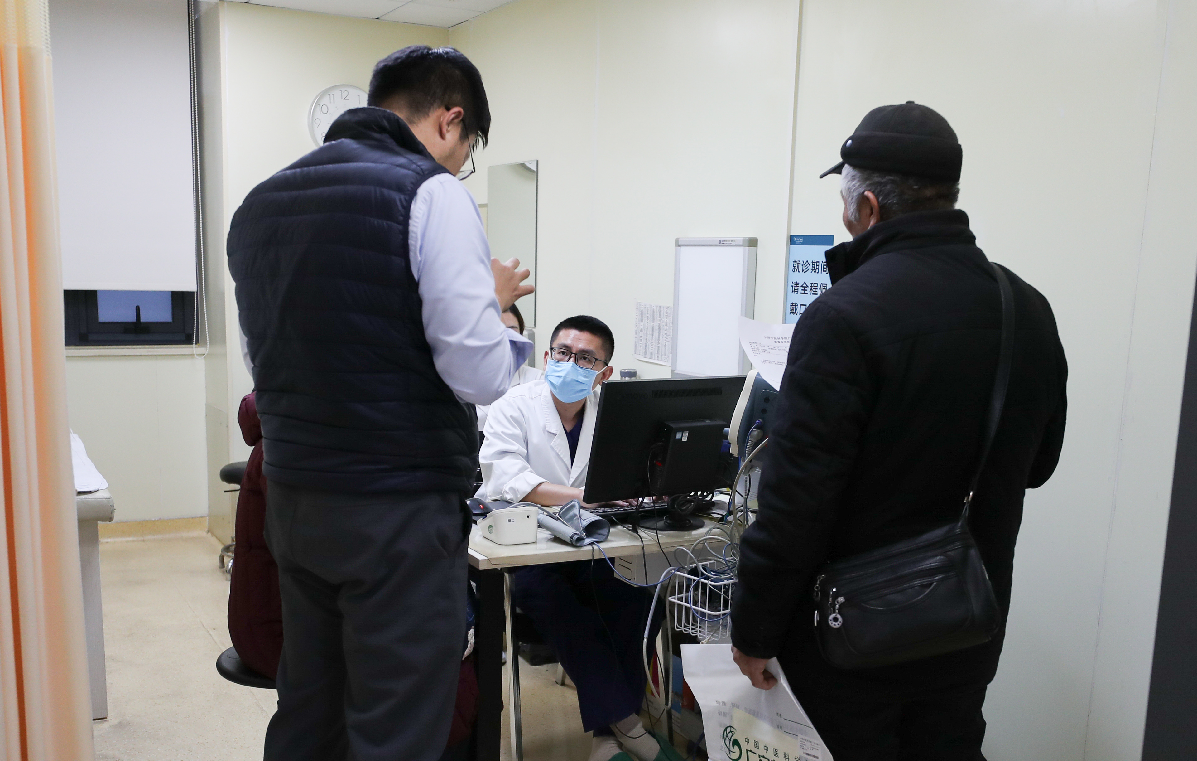 2月5日21时许,两名值班照拂在急诊大厅为别称患者测血压。