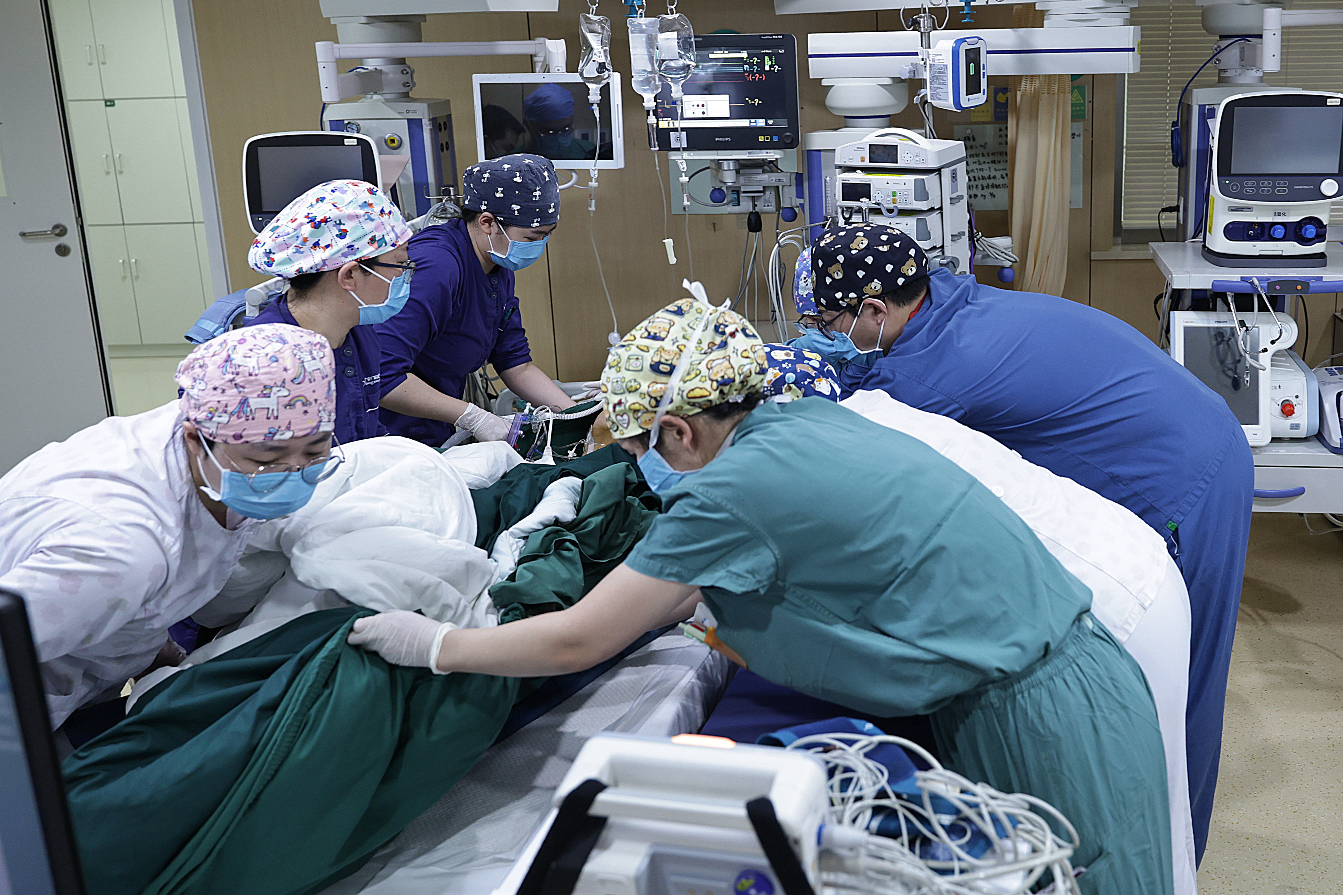 2月4日2时许,重症监护室和手术室照拂们协力将别称刚刚作念完手术的病东谈主更正到病床上。