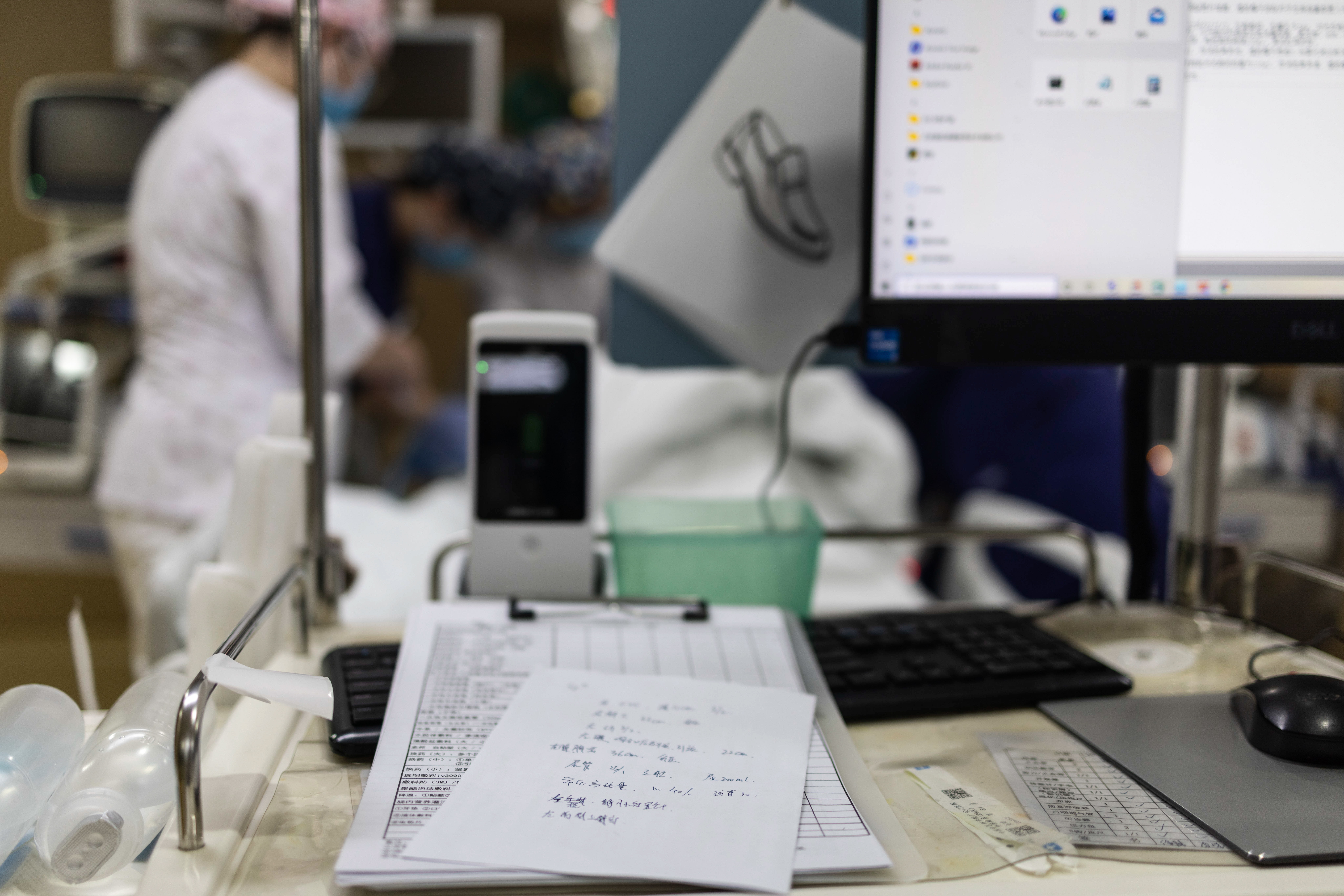 2月4日3时许,重症监护室照拂在对别称刚从手术室转运来的病患进行照顾,并对病患身段多项盘算进行临时纪录。