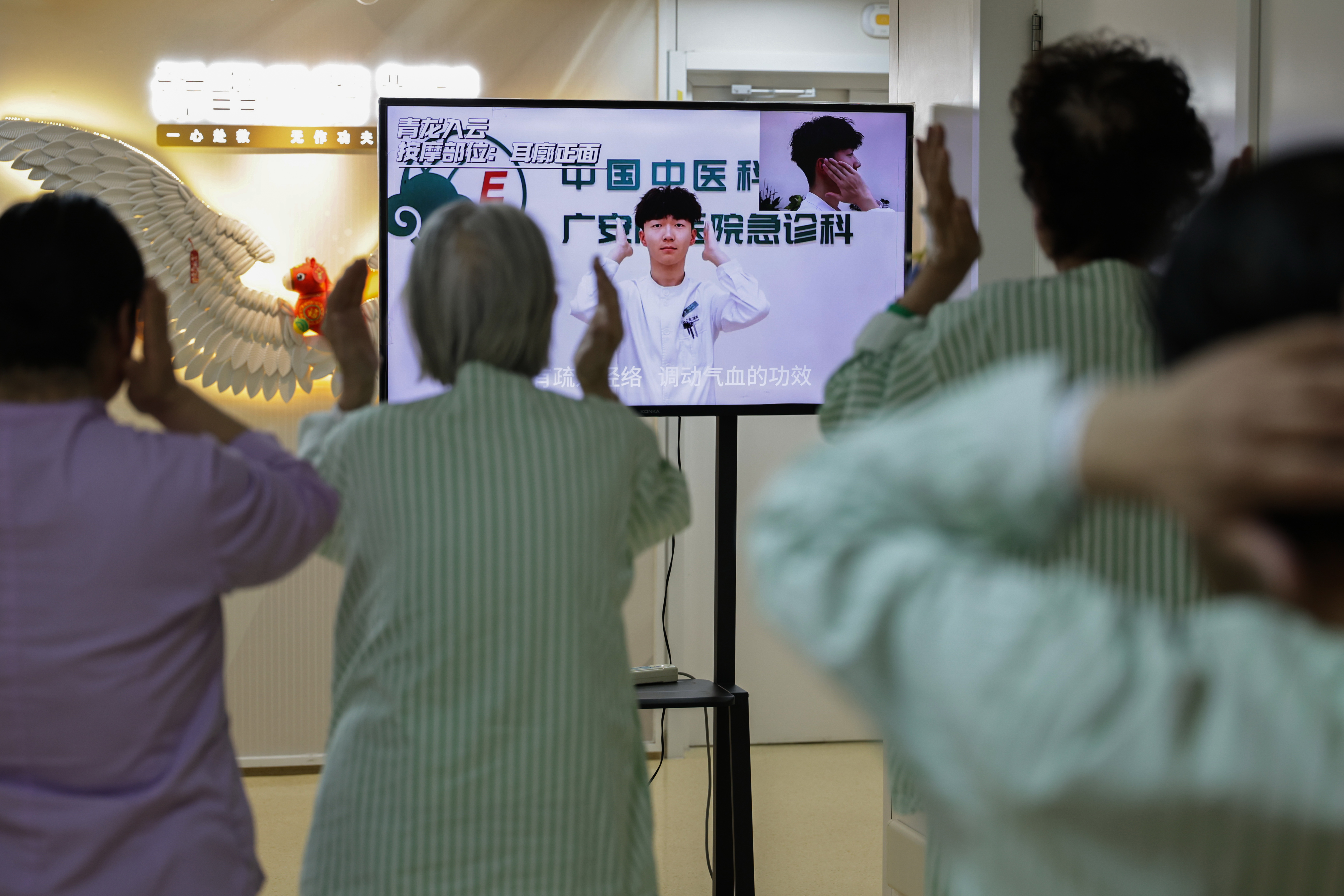 2月9日7时许,急诊病房入院病东谈主在病房内锻练中医养生操。